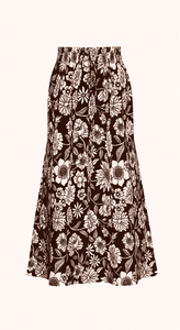 The Bloom Skirt a flowy, mid-length skirt featuring a bold 70s-inspired floral print. Crafted in our signature knit, it moves effortlessly and adds vintage charm to any look.