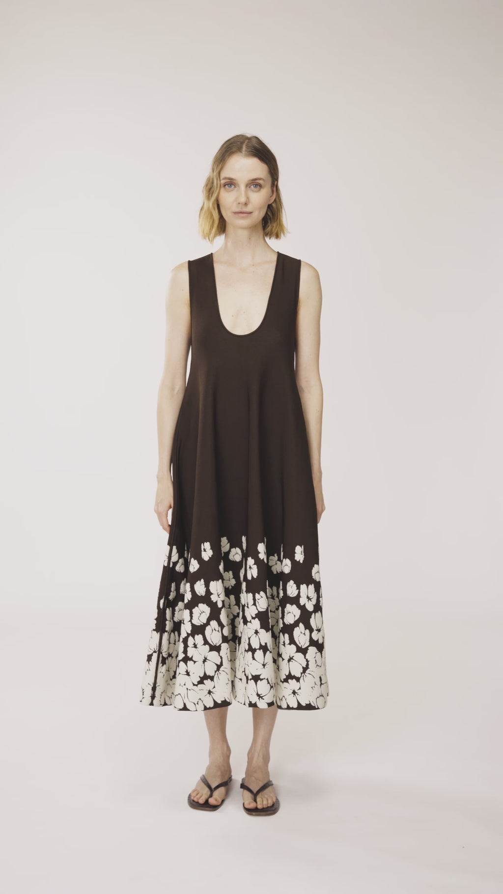 The Alba Dress is a lightweight stretch denim midi dress with a soft flow and falling floral print — perfect from day to night. A seasonal favorite.