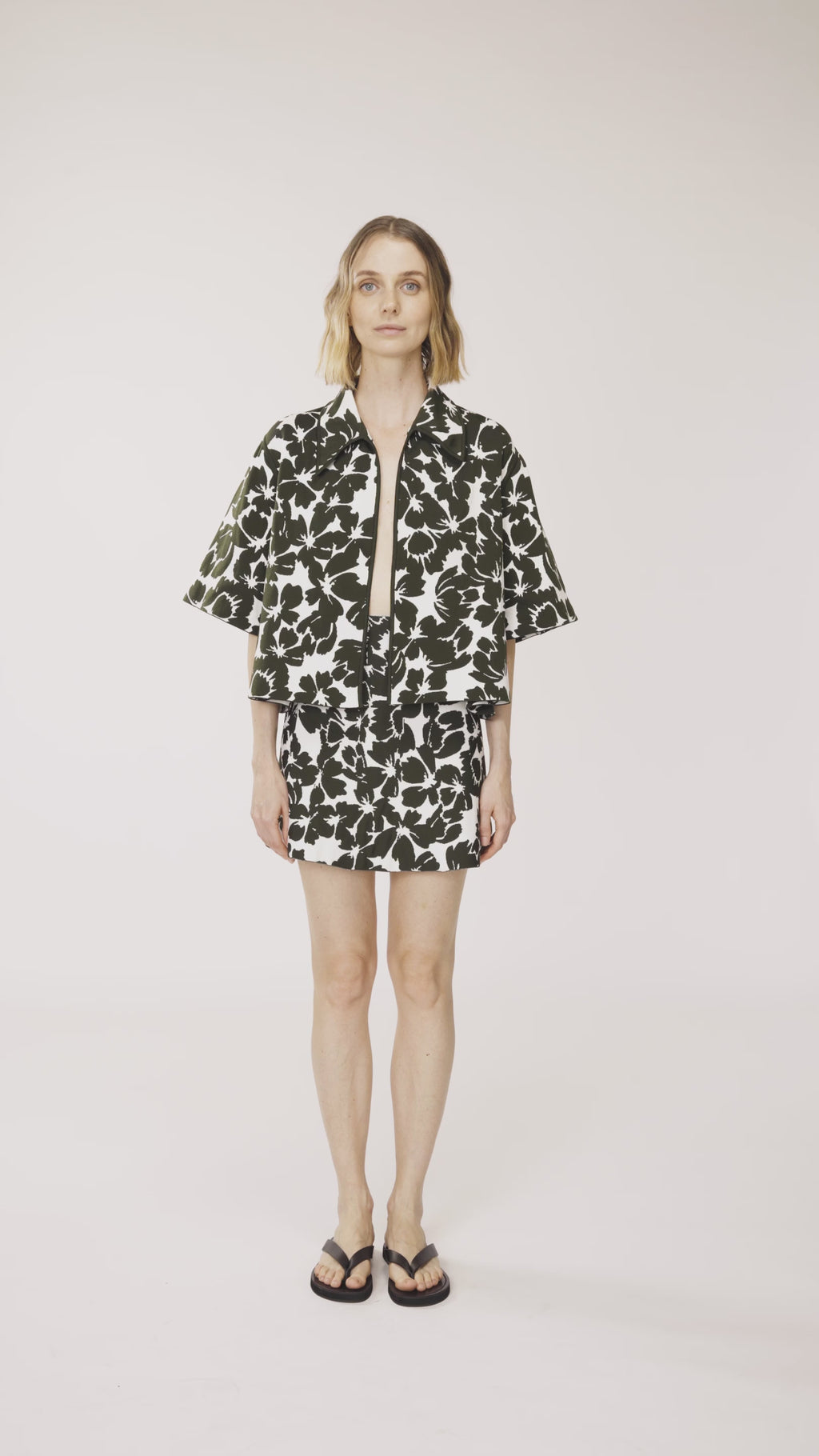 The Amae Skirt is a floral mini skirt crafted in double-faced knit with a reversible design. Featuring a delicate A-line cut, it pairs perfectly with the Tansy Jacket for a fresh and contemporary set.